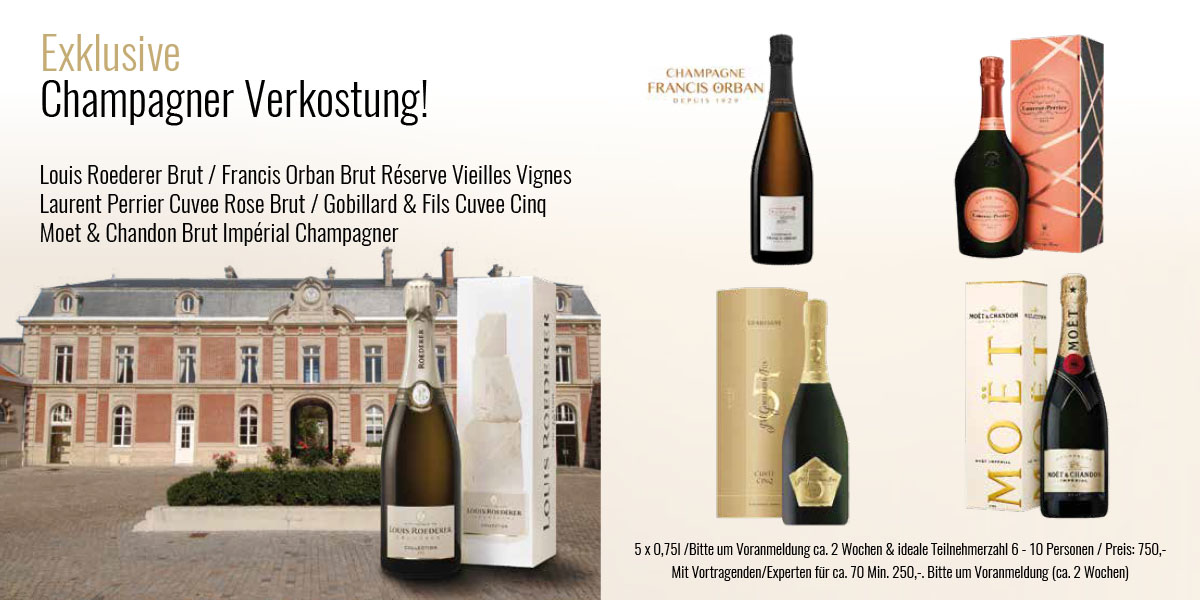 - 5 Flaschen (0,75l) renommierter Marken-Champagner – 750 €